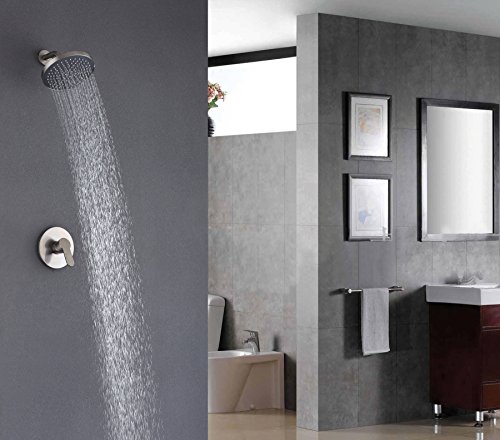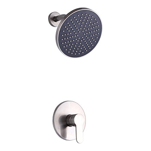 SUMERAIN Brushed Nickel Shower Faucet Set Single Handle Solid Brass Rough-in Concealed Valve with Stainless Steel Trim Wall Mount Shower Arm and 8-Inch ABS Plastic Round Fixed Rainfall Showerhead