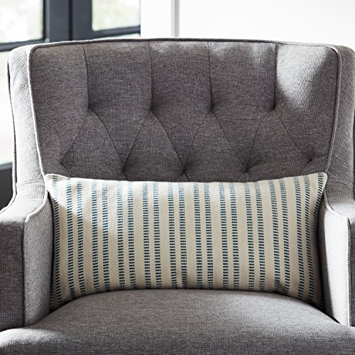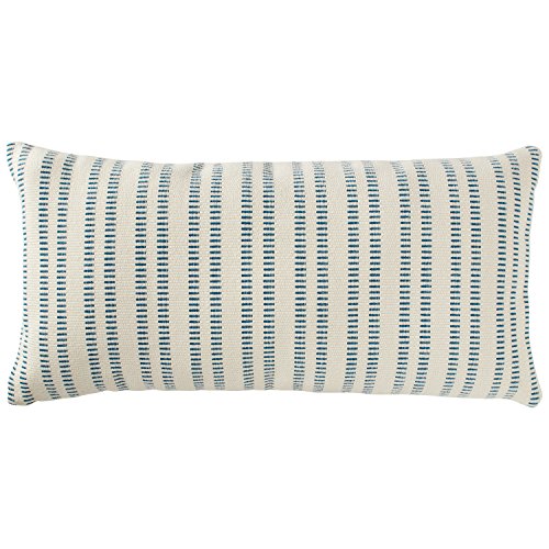 An Amazon brand - This pillow features a timeless style with just the right mix of refined and casual touches. Turquoise stripes on an ivory background are yarn-dyed for lasting color, while the fabric's texture and weight gives it a substantial, durable feel.Feature