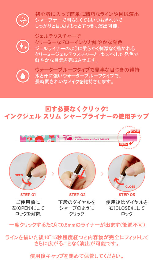 【韓国直送】 韓国コスメ <THE FACE SHOP X Trolls> Inkgel Slim Eyeliner (トロールズ インクジェル スリム シャープライナー/全4色1択)