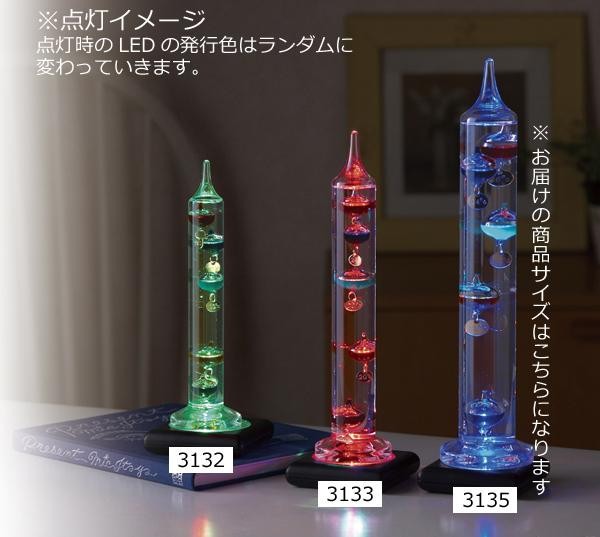 | カラフルなボールが浮き沈みして温度を示すユニークな温度計にコースターライトをセット。赤、青、緑の光がオーロラのように輝きます。 |