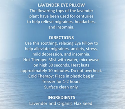 Each Luxury Spa Hot Cold Lavender Eye Pillow Yoga Eye Pillow Lavender filled Eye Pillows provide calming aromatherapy for relaxation and stress relief. Featuring beautiful silky soft fabric filled with organic flax seed and natural french lavender flowers. Also, a great Sleeping Eye Mask blocks out light completely with no uncomfortable straps.