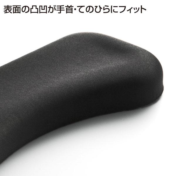リストレストの凹凸が手首をサポートし、手のひらにフィットすることにより手首の角度を水平に保ちます。タイピング時の手の軌跡に合わせたパッドの形で入力をスムーズにします。内部の低反発素材が手の動きに合わせて柔軟に変形し、包み込むようにサポートします。滑らかな手触りの表面素材で、タイピング時の手の動きをスムーズにします。 | |