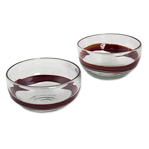 NOVICA Hand Blown Clear Red Glass Bowls, 15 oz. 'Chestnut Band' (pair)