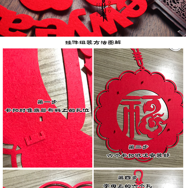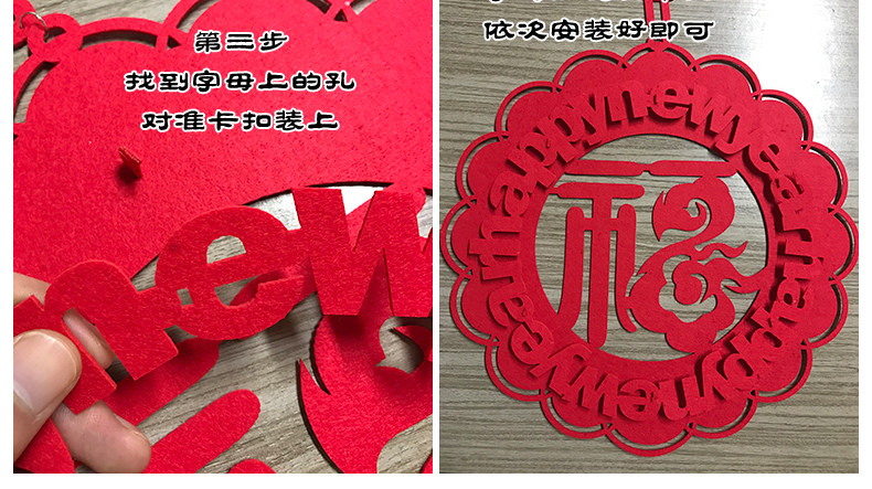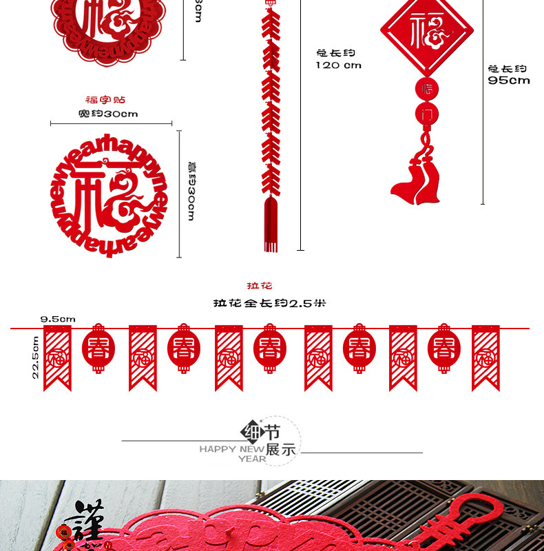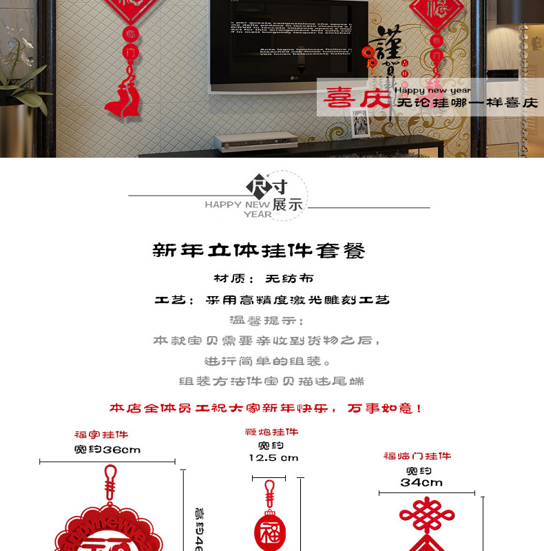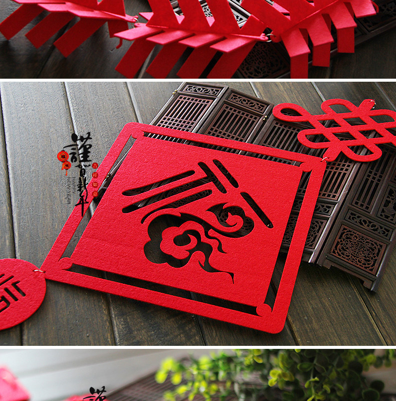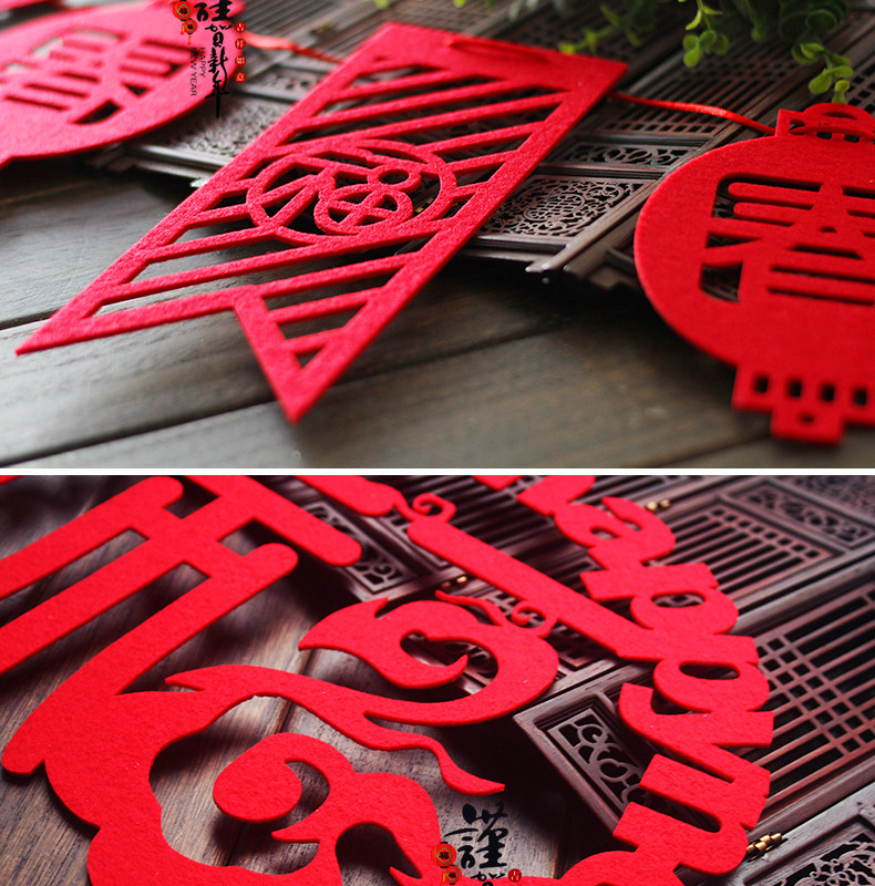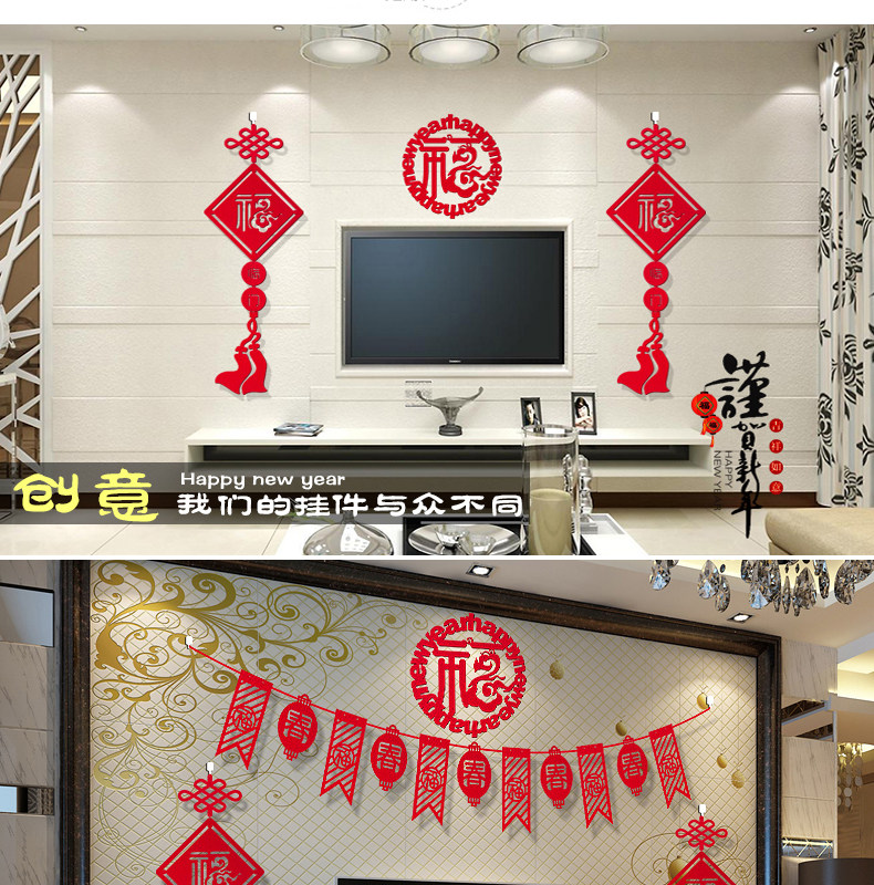 新年福字挂件中国结拉花春节装饰大礼包鞭炮福字贴节庆2017创意