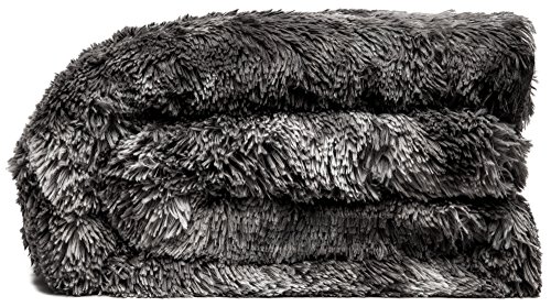 Chanasya Super Soft Shaggy Fuzzy Fur Fluffy Faux Fur Warm Elegant Cozy with Sherpa Color Variation Pattern Print Dark Gray Throw Blanket (50" x 65") -Charcoal