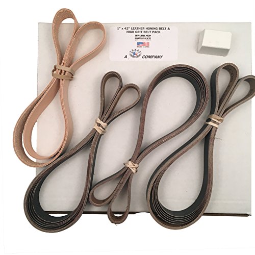 1x42 High Grit Assorted 15 Belt Pack of 600, 800, 1000 + Leather Strop & Compound Made in USA
