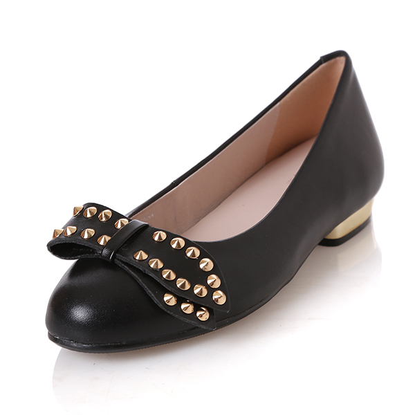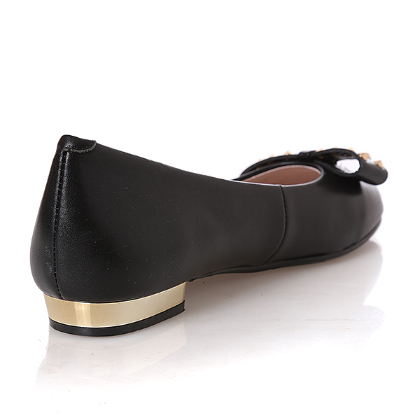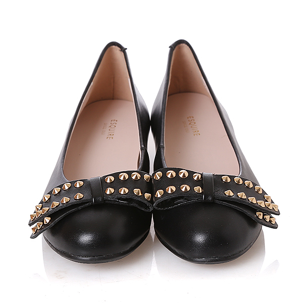 스터드장식이 포인트로 적용되어진 리본단화로 슈즈 안쪽에 속굽이 1cm들어가져있다. 겉으로 들어나지 않는 높이라서 자연스럽게 키가 커지는 느낌의 단화이다.