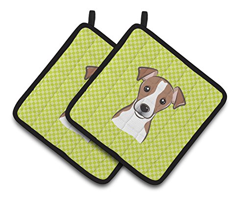 Caroline's Treasures Checkerboard Lime green Jack Russell Terrier Pair of Pot Holders BB1322PTHD, 7.5HX7.5W, Multicolor