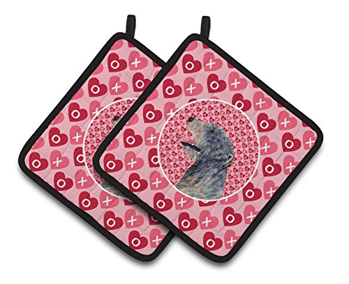 Caroline's Treasures Irish Wolfhound Hearts Love & Valentine's Day Portrait Pair of Pot Holders SS4506PTHD, 7.5HX7.5W, Multicolor
