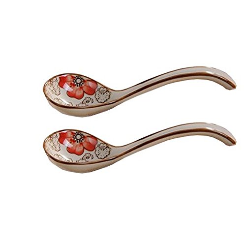 Kangkang@ Set of 2 Chinese Traditional Porcelain Soup Spoons,Medium (Red Peony)