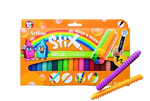 Artline Brush Markers include a flexible brush tip that creates beautiful thin and thick strokes. They Connect like blocks- cross-shape, vertical, lateral or bundled. It comes with 20 colors. Safe for children and adults.