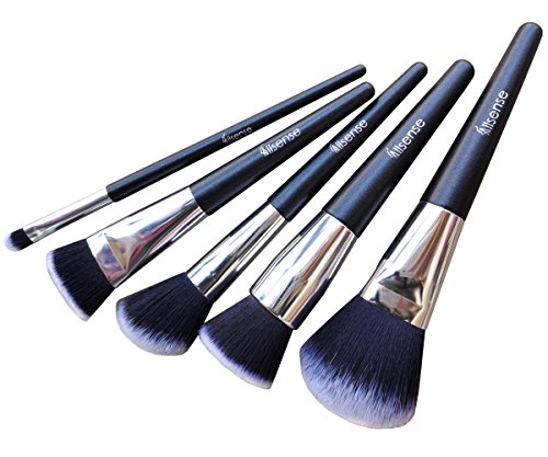 Allsense 5Pcs Face Brush Set Foundation Powder Blush Brushes with Hot Pink Makeup Pouch