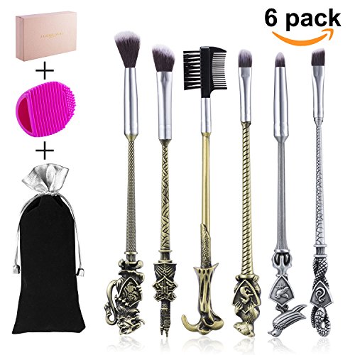 6pcs Potter Wizard Wand Makeup Brushes Set for Women and Girls,Metal Cosmetic Brushes for Foundation Blending Blush Face,Eye Shadow, Eyebrow...
