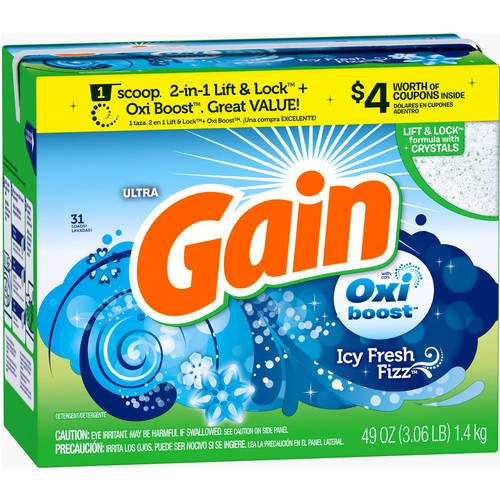 2 Pk. Gain Ultra Powder Detergent with Oxi Booster, Icy Fresh Fizz scent with Lift Lock formu...