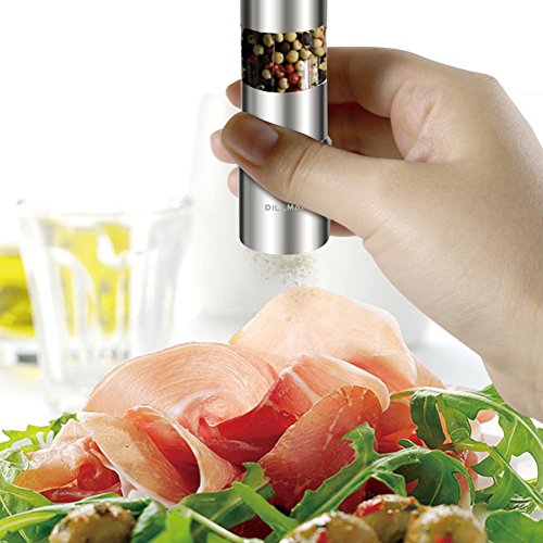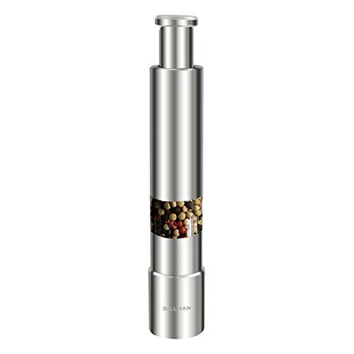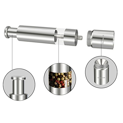 Salt Pepper Grinder Stainless Steel Salt and Pepper Mill Seasoning Mill One Hand Operated Mini Thumb Push Muller for Peppercorns, Sea Salt, Spices