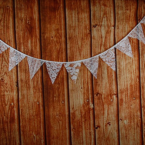 -. Feature : 12 Lace Fabric Flag Bunting / 6 different Patterns / Length: Approx 3.2 Meters / 10.5 feet / Flag Size: approx 6.3"(16cm) in side length and 5.91"(15cm) in height / Used in Wedding, Birthday Party, Baby Show