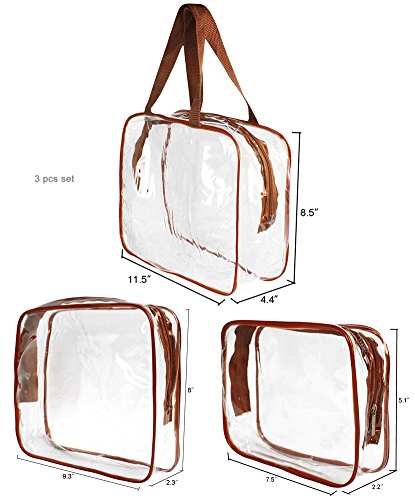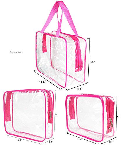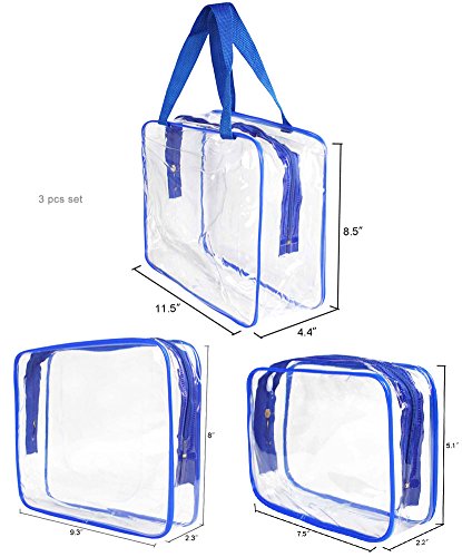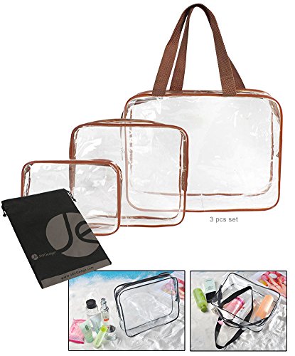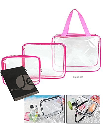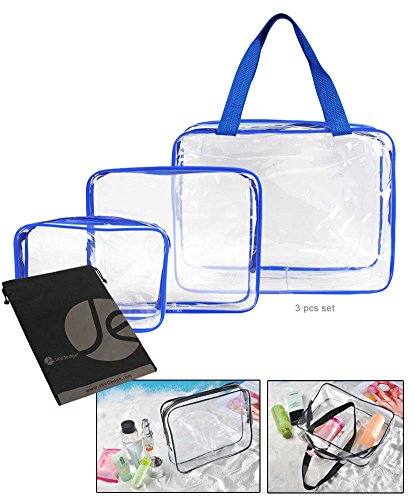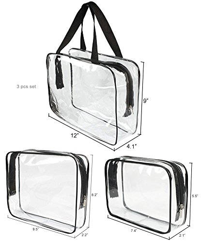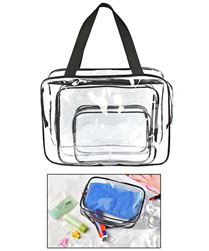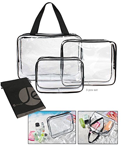 -. Title : JAVOedge 3 Piece PVC Clear Toiletry / Cosmetic / Storage Travel Bag Set with Handle, Zipper Closure
