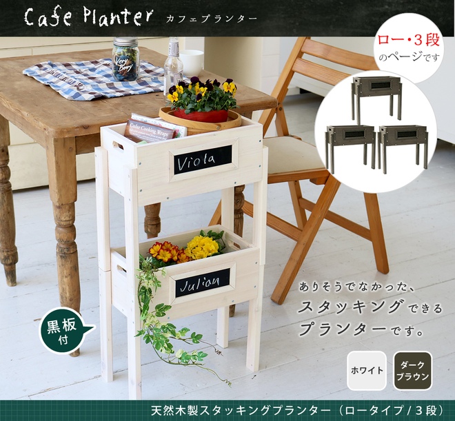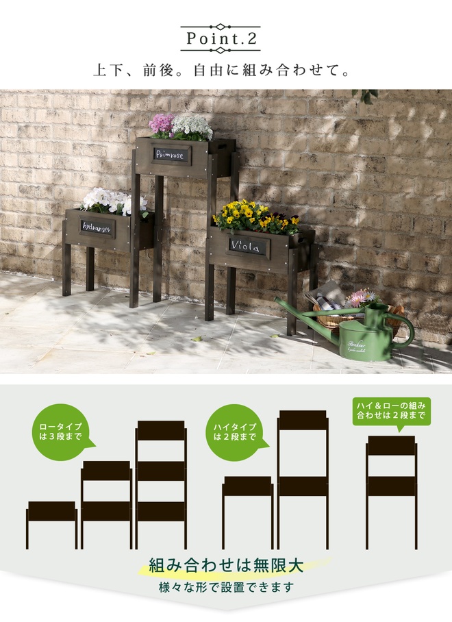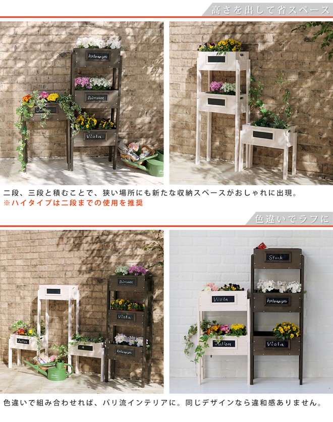 ●ハイタイプは2段、ロータイプは3段まで積むことができるプランターです