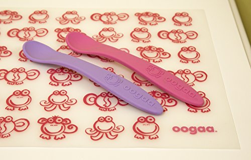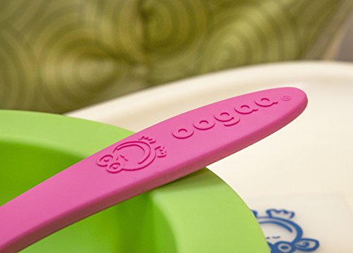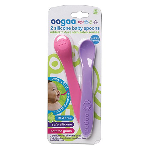 Studio : oogaa Publisher : oogaa Binding : Baby Product Product Description The perfect weaning spoons, designed with a long handle to fit adult hands. Made from European approved food safe, high-grade silicone (higher than FDA standards). Will not leach chemicals, non-toxic, PVC and phthalate FREE! Bumpity Bump, open wide! oogaa's spoons feature a soft textured underside which glides over babies' tongue and lips stimulating babies senses. Soft silicone is BPA free, BPS free, no harsh chemicals. Dishwasher safe, boil safe and electric sterilizer safe. Makes feeding fun! DO NOT MICROWAVE! 0