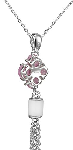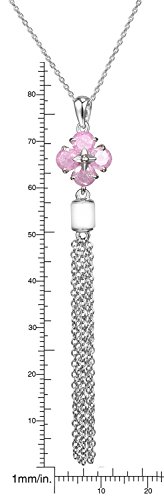** METERIALS ** Fine Pendant Necklace. Metal is .925 sterling silver. Rhodium overlay. High polished. Diamond shape pink crystals. Sterling silver bead and tassel hanging. Lead-Free Nick-Free no sensitivity issue no harm to health & environmentally friendly. MATCHING EARRINGS on sales (search for ASIN B071L6WQ1D)