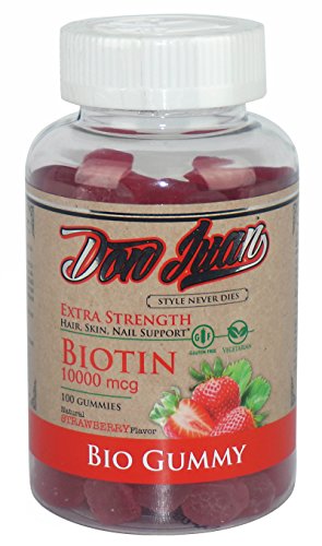 -. Binding : Health and Beauty -. Brand : Don Juan -. EAN : 0638932480012 -. Feature : Don Juan Bio Gummy Extra Strength - 100 Count / Boosted with 10000 MCG BIOTIN to support hair, skin, and nails. / Gluten free gummies fused with natural strawberry flavor. / Vegan Formula / Proudly Made In Miami, FL USA -. Label : Don Juan -. Manufacturer : Don Juan -. MPN : DJ_GUMMY -. PartNumber : DJ_GUMMY -. ProductGroup : Health and Beauty -. ProductTypeName : HEALTH_PERSONAL_CARE -. Publisher : Don Juan -. Studio : Don Juan -. Title : Biotin Gummies 10000mcg- DON JUAN Bio Gummy-Hair Skin Nail Support -100 Count -. UPC : 638932480012