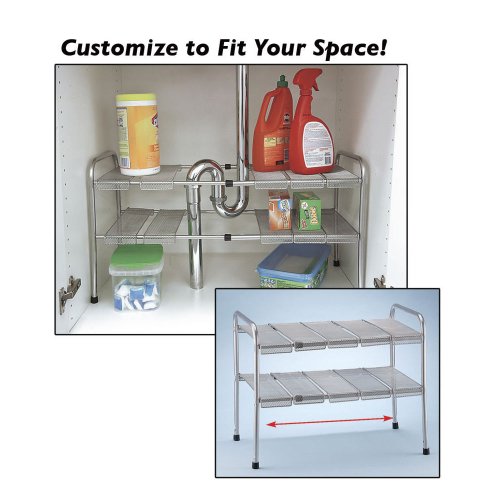 2 Tier Expandable Adjustable Under Sink Shelf Storage Shelves Kitchen Organizer
