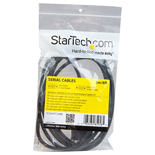 StarTech.com DB9 RS232 Serial Null Modem Cable F/F - DB9 Female to Female - 9-Pin RS232 Null Modem Cable, 2-Meter, Black (SCNM9FF2MBK)