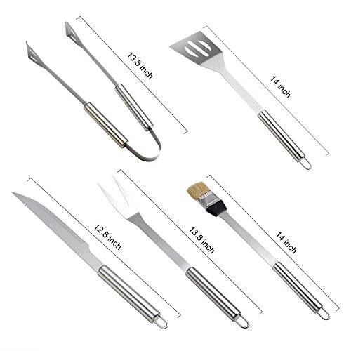 BBQ Grill Tools Set - Elecstory 5 Piece Professional Grade Grill Griddle and BBQ Tool Kit, Stainless Steel BBQ Indoor & Outdoor Grilling Kit, Great for Griddle and Grill in the Backyard, Camping