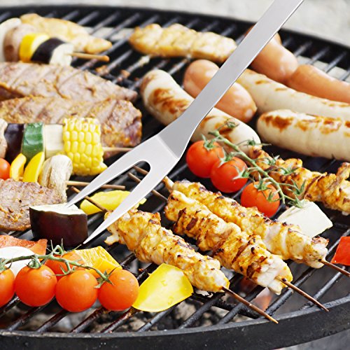 USER-FRIENDLY DESIGN --- The barbecue tools set has metal hanging hooks for convenience and easy storage around your grill or kitchen.With the storage bag, it is really easy to store when in no use