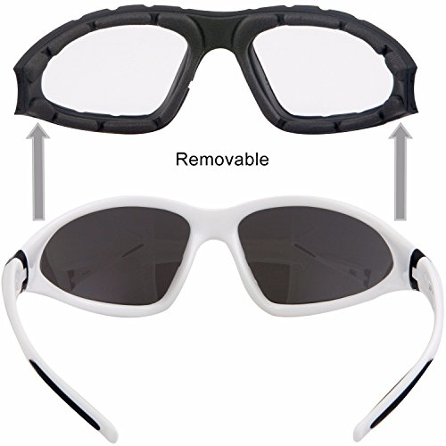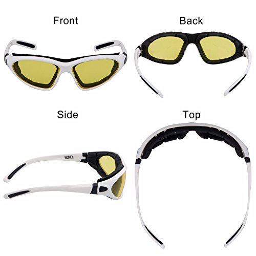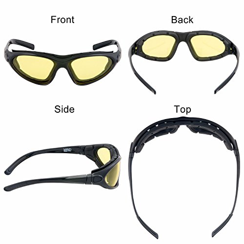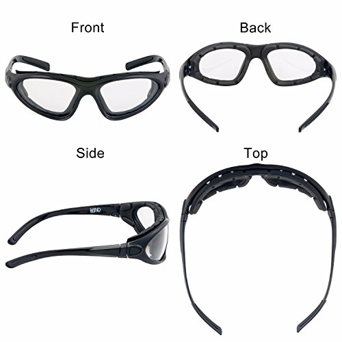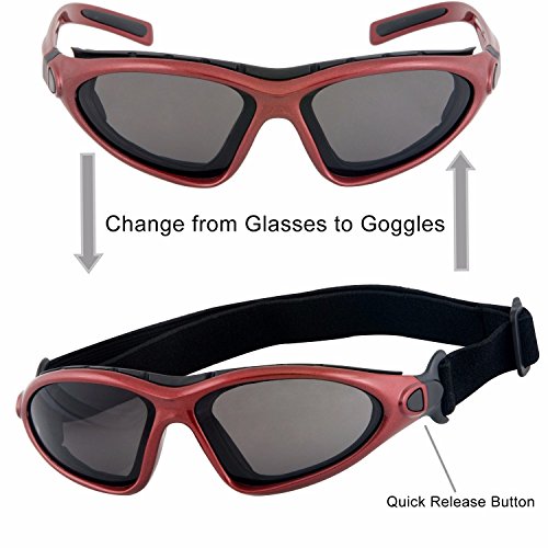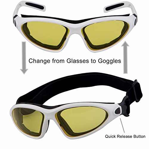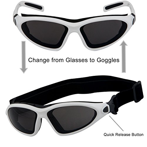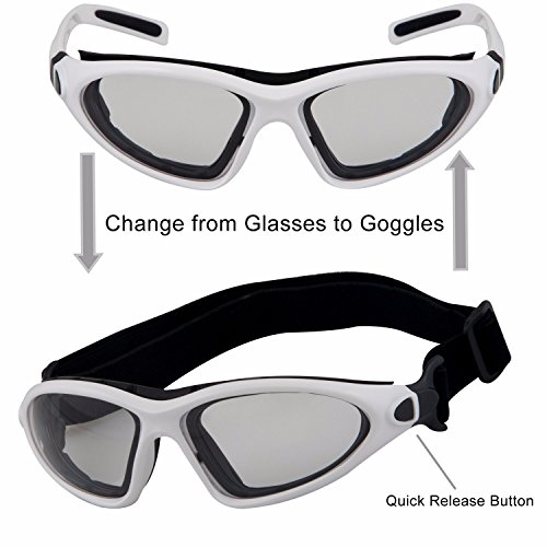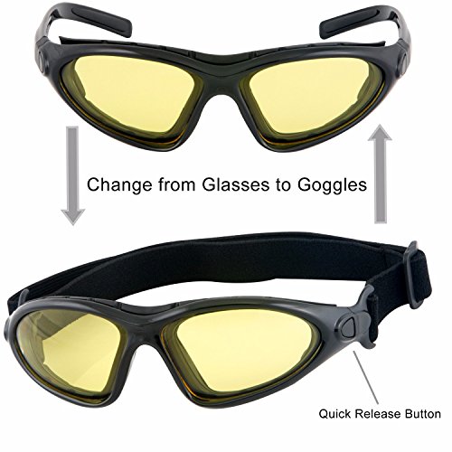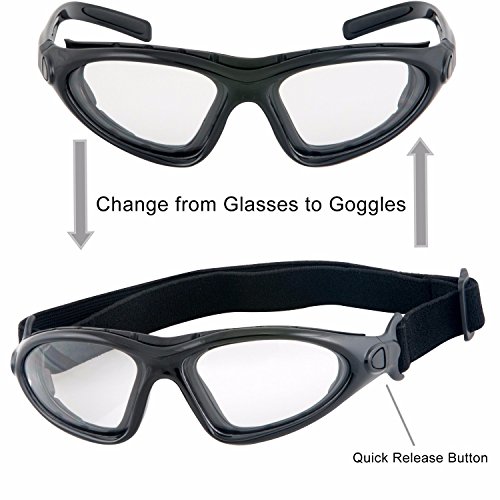 Product Description WYND Blocker brings versatility in its eyewear line. Each temple features a quick release button allowing easy transformation from glasses to goggles. For this very reason, they are ideal for situations involving fast jolting movements like racquetball or basketball or when experiencing the extreme wind forces commonly seen in skydiving or extreme moto sports. Additionally, the backstrap allows for a more comfortable fit when wearing certain types of helmets. They also features a removable wind resistant eye liner. These glasses can literally go from casual to extreme wear in seconds! They are available in black, white, red, blue, and orange frames. 0