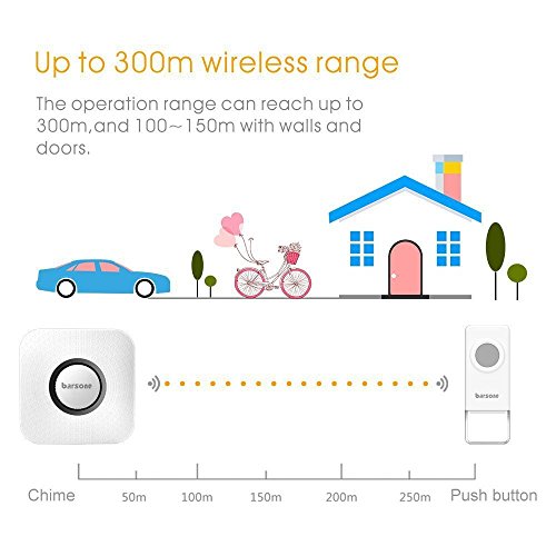 Super Long Working Distance The wireless doorbell kit supports 1000feet (300m) operation range in open space. If there are many obstacle (doors walls), the working distance still can