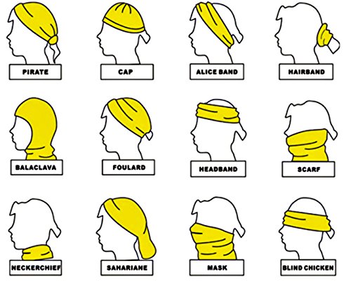 -. Feature : Made of soft, breathable quick-drying 100% microfiber polyester / One size fits most adults / 12+ ways to wear: neckerchief, headband, wristband, mask, hair-band, balaclava, scarf, headband, saharaine, pirate cap, beanie and bandana / Moisture-wicking, thermal protection from cold, wind and dust / Rave and festival fashion all over print skull style