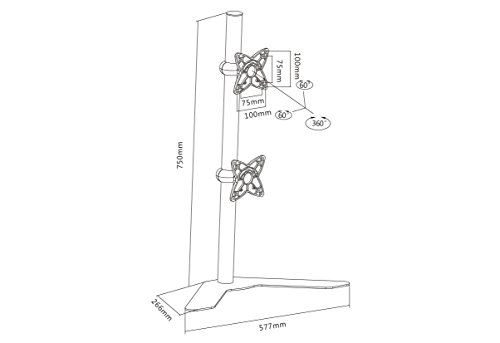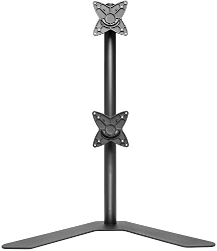 The VIVO stand model STAND-V002H is made of high grade steel and aluminum. Fits 2 LCD monitors 13" to 27". Supports up to 33 lbs per monitor. Stand uses VESA 75 x75 & 100 x 100 mounting holes.
