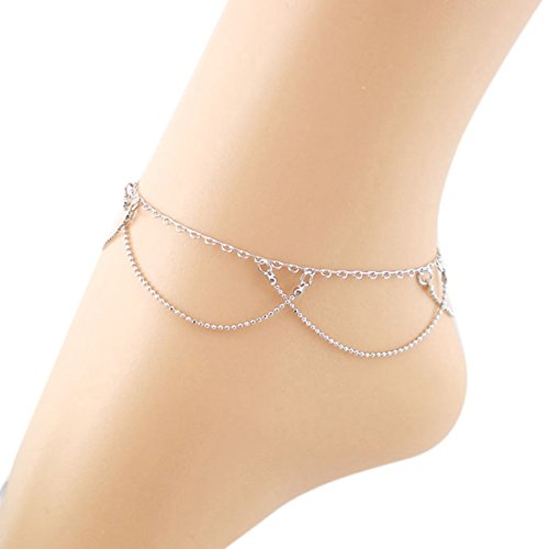 -. Title : Susenstone Double Curtain Chain Anklet Bracelet Sandal Barefoot Beach Foot Jewelry