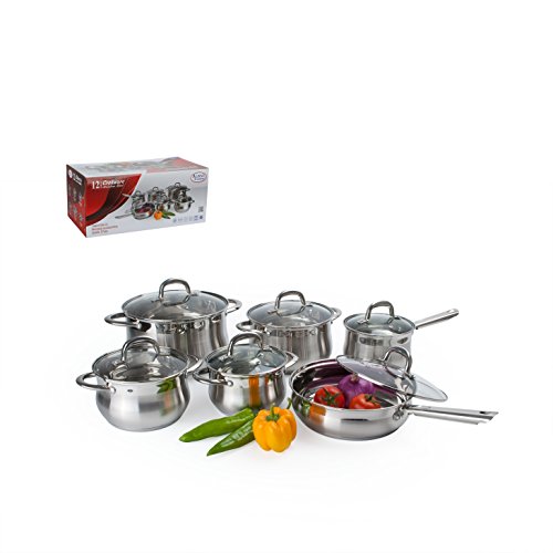 -. Title : Aramco 12 Piece Alpine Gourmet Belly Shape Cookware Set, Stainless Steel