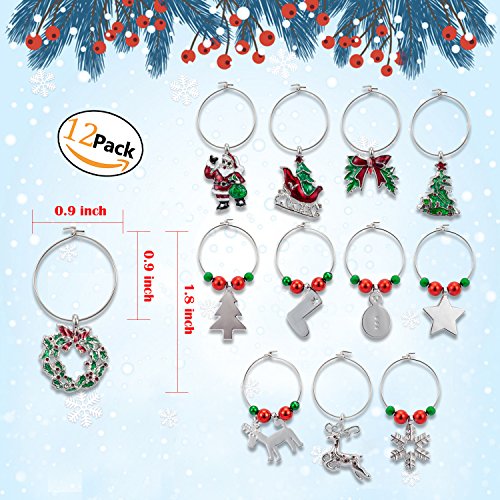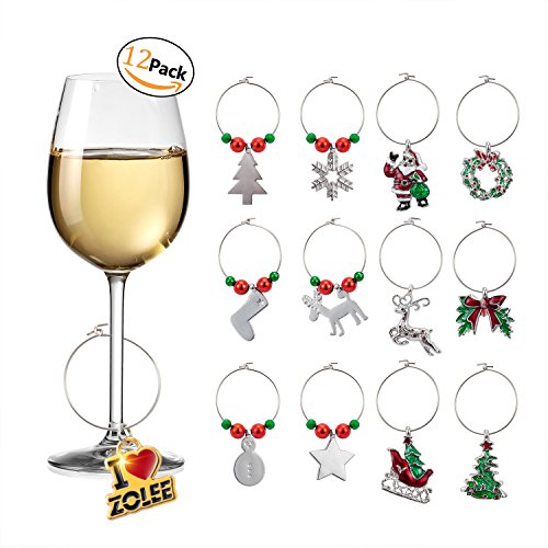 Product DescriptionZolee Wine Glass Charms, 12 Pieces Set of "Christmas Theme" plated silver with Simple Buckle Design - Glass Goblet Drink Markers, Great for Party, Wedding, Gathering, Favors Decoration and Supplies0