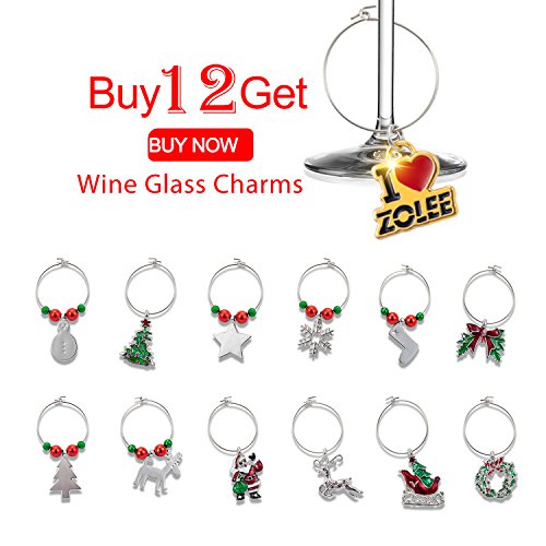 (Zolee)/Kitchen Dining/Bar Tools Glasses/DIRECT FROM USA/Zolee Wine Glass Charms Set of 12 Christmas Rings Ornaments Bulk Drink Markers with Simple Buck...