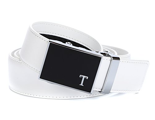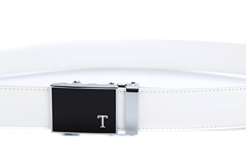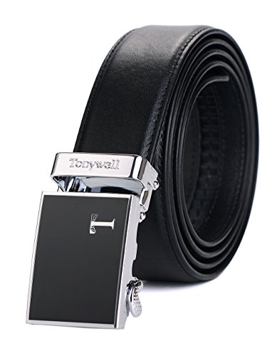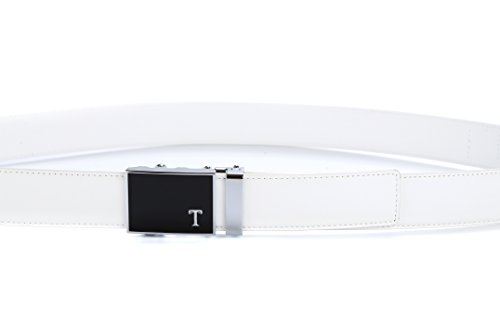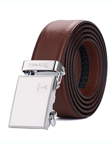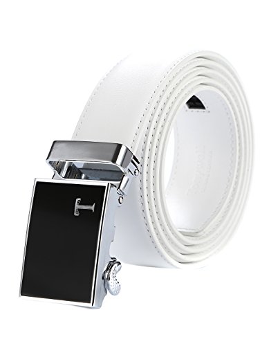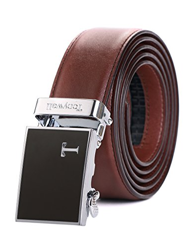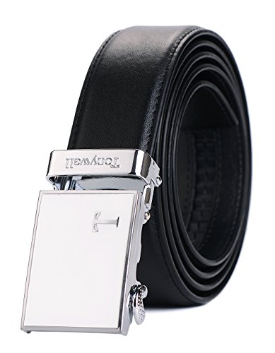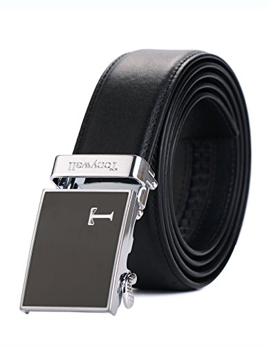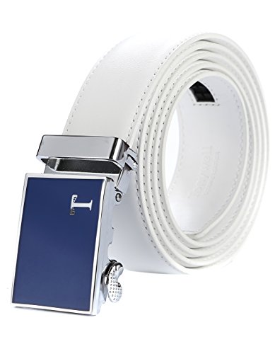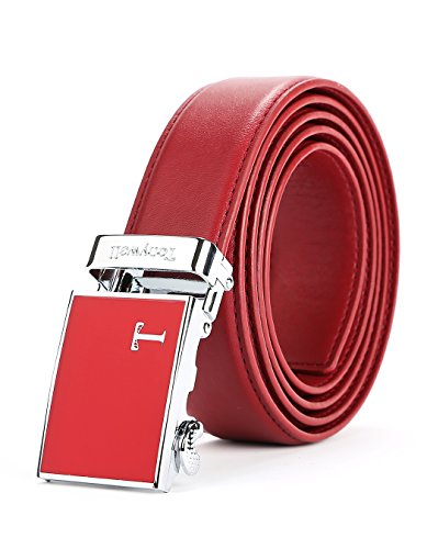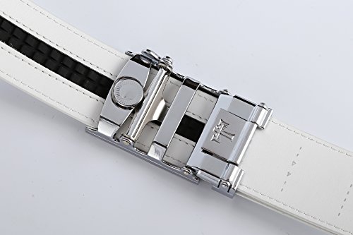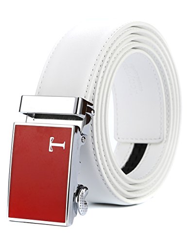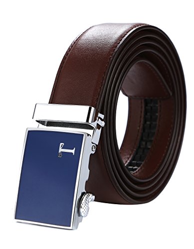 Genuine Leather - Belt is 1-3/8" (3.5cm)wide, smooth leather with no needless holes to crack or wear out. Automatic buckle is 1-5/8" wide, Metallic buckle with Resin finish.