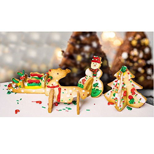 ❤ FUN SHAPES AND EASY TO ASSEMBLED : 3D Christmas Cookie Cutters BiscuitStainless steel cutters include Christmas Tree,Snowman,Sleigh and Elk 8 packs. 2 stainless steel biscuits make up a 3D pattern.