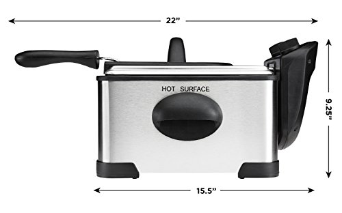The extra large sized four-liter capacity can be utilized with a large fryer basket, versatile enough whether eating alone or preparing a family meal.