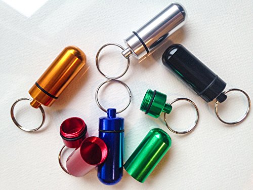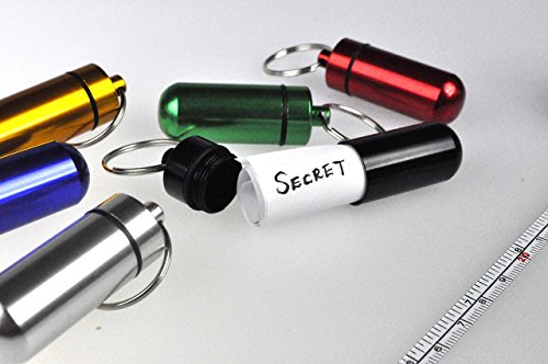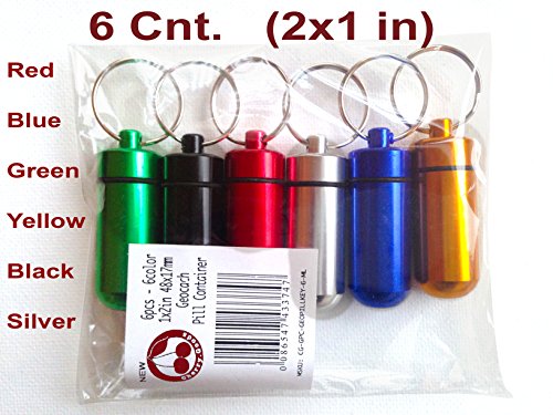 Cherry Goods - Aluminium Pill Container for Geocache, 1 x 2-inch (Set of 6 Pcs) - Pill Box Case Bottle Cache Drug Holder Keychain