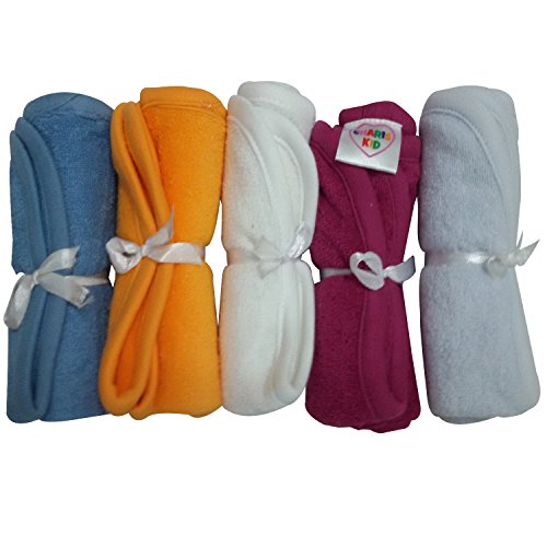 - Feature : DOUBLE LAYERS 100% PREMIUM SOFT, THICKER & DURABLE TERRY COTTON - Thicker, Softer, Fluffier, More Absorbent, and More Durable than a lot of washcloths in the market. It is so PRATICAL that there are actually two pieces of washcloths combined into one that make it SUPER ABSORBENT. / BEST FOR BABY DELICATE & SENSITIVE SKIN, even for ADULTS- It is HYPOALLERGENIC NATURAL WASH CLOTHS / CLOTH WIPES - For Baby Delicate skin, little face, little nose body and also adult with sensitive skin or Eczema. / PERFECT GIFTS for Baby Registry, New Baby Shower, Gifts Basket Sets. BUY MORE To Keep! Keep some in your Towel Closet, Near Dining Table or Baby Hair Chair, inside Bathroom , storing bag in baby stroller or anywhere you want convenient reach of SOFTEST AND MOST ABSORBENT WASHCLOTHS. / 5 COLOR BULK PACK SET & MULTI-PURPOSE USAGES- Unisex Solid Bright & Fun Colors (white, blue, orange, light blue, and purple) that fit both baby boys and girls. Use different colors in different occasions i.e. during meal time, bath time, and travel time, or to match with baby dress or the color of solid food they eat. YOU CAN USE THESE WASHCLOTHES : to Wipe for feeding spilt up; wipe baby's face and neck as warm washcloths, Wiping after wet diaper or baby drooling; Clean up the little mess after feeding and many more. Essential diaper bag item. / Buy TWO and GET SECOND ONE AT $4.00 OFF. Buy FOUR SAVE $8.00! Don't miss this HUGE SAVINGS! Enter code PM4DLOFF at checkout. 100% SATISFACTION GUARANTEED! 60 Days Money Back Guarantee! ONE MORE BONUS: FREE "Baby First Care" eBook. An eBook that bring great insight to every new parent, parent and grandparent with new born or toddler.