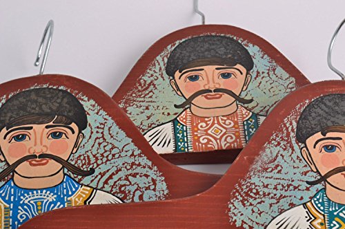 -. Feature : DETAILS - This set of clothes hangers consists of three items. Wooden surface is decorated with the images of Ukrainian boys painted with acrylics. These wooden clothes hangers will be definitely appreciated by your husband and son. /