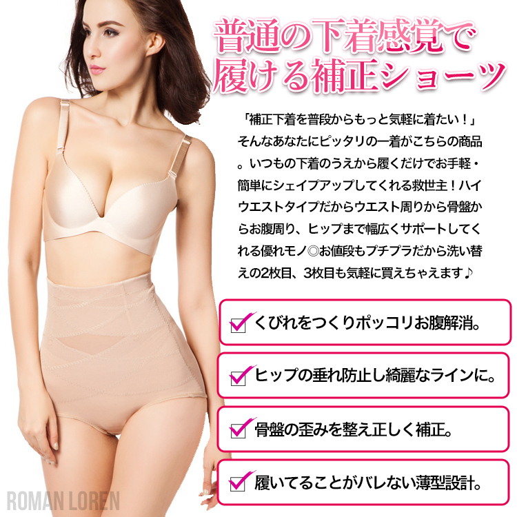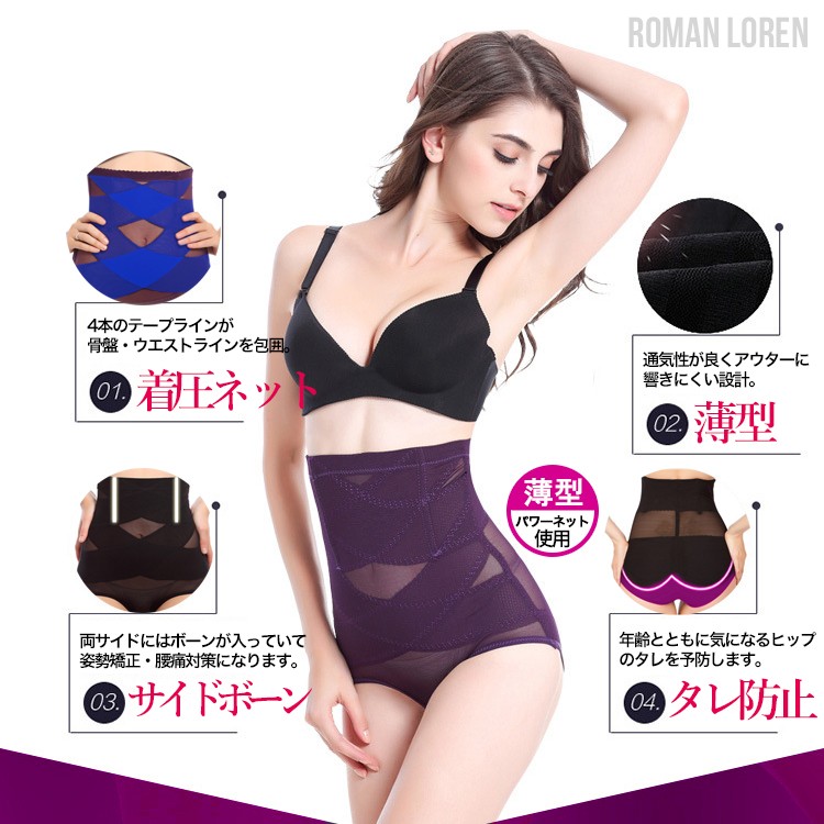 ハイウエストWテーピング設計で骨盤からお腹周りまでシェイプアップ!着用していることがバレない薄型設計ながらしっかり着圧してくれるパワーネットを採用した骨盤補正ガードルショーツです。両サイドにはボーンスプリングが入っているから姿勢矯正、腰痛対策にも。ヒップもや優しく包み込んで年齢と共に気になるタレも予防してくれます。いつもの下着の上から履くだけの手軽さと単品で買うよりさらにお安い2枚セットで驚きのプチプライスも◎
