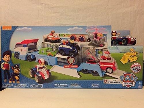 -. Feature : The Paw Patroller is the ultimate rescue vehicle and can transport three Paw Patrol vehicles inside, or display six vehicles when opened up! / Comes with Ryder and his ATV vehicle! Store his ATV in the back of the Patroller and get ready to save Adventure Bay! / Re-enact rescue missions with the Patroller's authentic sound effects and working elevator that takes vehicles up to Ryder's command center! / Paw Patrol EMT Marshall and EMT Ambulance are ready to save Adventure Bay! / Collect all the loveable Paw Patrol Action Pack Pups and work together as a team with Chase, Rubble, Skye, Zuma, and Rocky.