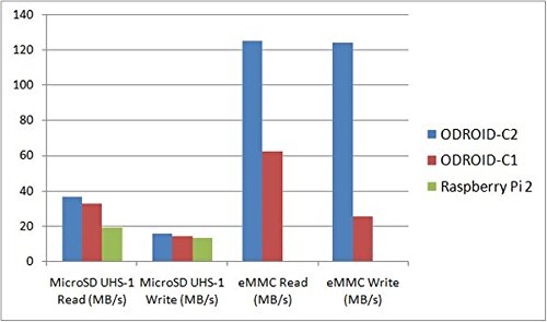 Studio : Hardkernel Publisher : Hardkernel Binding : Personal Computers Product Description The C2 can boot from a MicroSD card or an eMMC module. The MicroSD interface supports the higher performance UHS-1 mode as well. File access of a 512MB file (read/write) on two different storage options shows distinct performance differences. The eMMC 5.0 storage is ~7x faster than the MicroSD Class-10 card in read tests. The MicroSD UHS-1 card is ~2x faster than the MicroSD Class-10 card in read tests. The MicroSD UHS-1 card provides a great low-cost option for many applications! 0