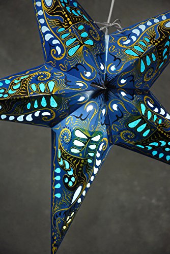 -. Feature : You can light your lanterns with Battery Operated LED 12-LED 7hr LED Light Cube w/ 12 LEDs 12 hr. Remote controlled LED light 7 hr. 16 LED battery operated light 8 hr 16 LEDs 8 hr. Globe light white cord set for 12"- 24" size lantern / Bring vivid, bohemian bliss to your home with this colorful piece. The Blue Star Lantern is made with thick cardboard with translucent patches covered in tissue paper, allowing dazzling blue light to illuminate its surroundings. / This piece, once assembled, is 24 inch wide and 9 inch deep, and has 5 points. It comes flat and requires minimal assembly.