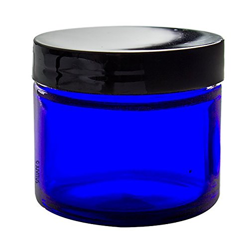 Cobalt Blue Glass Straight Sided Jar - 2 oz (12 Pack) + Spatulas and Labels