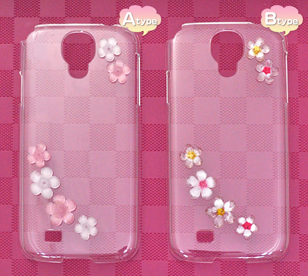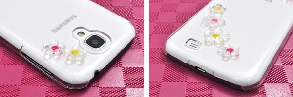 キュートなフラワーデコ付きのGALAXY S4 SC-04E用ハードクリアケース