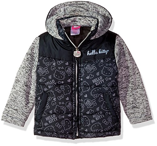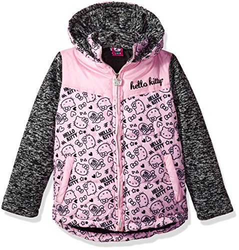 Hello Kitty Big Girls' Printed Puffer Jacket with Sweater Sleeves, Pink, 7